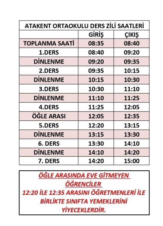 OKULUMUZUN GİRİŞ-ÇIKIŞ SAATLERİ